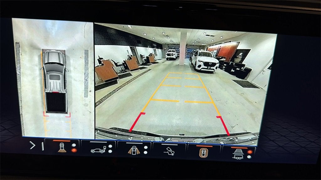 - Allows driver to see inside the cargo bed on the infotainment display to help with 5th wheel or gooseneck hitching and to check cargo