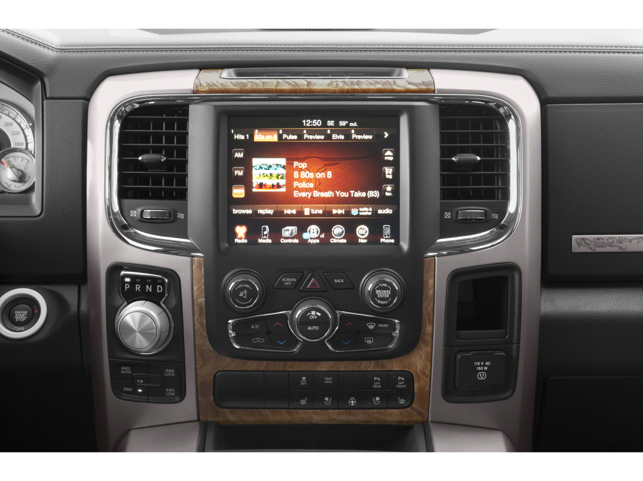 This vehicle Contains the following features and options: Quick Order Package 28M Laramie Limited (115V Auxiliary Power Outlet, 4-Corner Air Suspension, Auto High Beam Headlamp Control, Body Color Fender Flares, Body Color Front Fascia, Body Color Rear Bumper w/Step Pads, Bucket Seats, Folding Flat Load Floor Storage, Heated Front Seats, Heated Second Row Seats, Heated Steering Wheel, High Back Seats, Keyless Enter-N-Go, Laramie Limited Cluster, Laramie Limited Group, Laramie Limited Leather Bucket Seats, Leather Wrapped Grab Handle, Limited Badge, Luxury Door Trim Panel, Luxury Front & Rear Floor Mats, Power 10-Way Memory Driver & 6-Way Passenger Seats, Rain Sensitive Windshield Wipers, Ram 1500 Badge, Rear 60/40 Split Folding Seat, Rear Window Defroster, Remote Proximity Keyless Entry, Steering Wheel Mounted Audio Controls, Ventilated Front Seats, Wheels: 20 x 9 Aluminum Paint/Chrome Inserts, and Wood/Leather Wrapped Steering Wheel), Trailer Tow Mirrors & Brake Group (Class IV Receiver Hitch, Power Chrome Trailer Tow Mirrors, Trailer Brake Control, and Trailer Tow Mirrors), 10 Speakers, 20 x 9 Aluminum Polished/Gold Inserts Wheels, 4-Wheel Disc Brakes, ABS brakes, Adjustable pedals, Air Conditioning, Alloy wheels, AM/FM radio, Anti-Spin Differential Rear Axle, Audio memory, Auto-dimming door mirrors, Auto-dimming Rear-View mirror, Automatic temperature control, Brake assist, Center Hub, Compass, Delay-off headlights, Driver door bin, Driver vanity mirror, Dual front impact airbags, Dual front side impact airbags, Electronic Stability Control, Electronically Controlled Throttle, Emergency communication system, Front anti-roll bar, Front Bucket Seats, Front Center Armrest w/Storage, Front dual zone A/C, Front fog lights, Front reading lights, Front wheel independent suspension, Fully automatic headlights, Garage door transmitter, Genuine wood dashboard insert, Genuine wood door panel insert, Heated door mirrors, Heated front seats, Heated rear seats, Heated steering wheel, Illuminated entry, Leather Shift Knob, Leather steering wheel, Low tire pressure warning, Manufacturer's Statement of Origin, Memory seat, Navigation System, Occupant sensing airbag, Outside temperature display, Overhead airbag, Overhead console, Panic alarm, ParkView Rear Back-Up Camera, Passenger door bin, Passenger vanity mirror, Pedal memory, Power door mirrors, Power driver seat, Power Lumbar Adjust, Power passenger seat, Power steering, Power Sunroof, Power windows, Premium Filigree Leather Seats, Radio data system, Radio: Uconnect 8.4AN AM/FM/SXM/HD/BT/NAV, Rear anti-roll bar, Rear seat center armrest, Rear step bumper, Remote keyless entry, Security system, Speed control, Split folding rear seat, Steering wheel mounted audio controls, Tachometer, Tilt steering wheel, Traction control, Trip computer, Turn signal indicator mirrors, Variably intermittent wipers, Ventilated front seats, Voltmeter, and Wheels: 20 x 9 Polished Aluminum Forged.