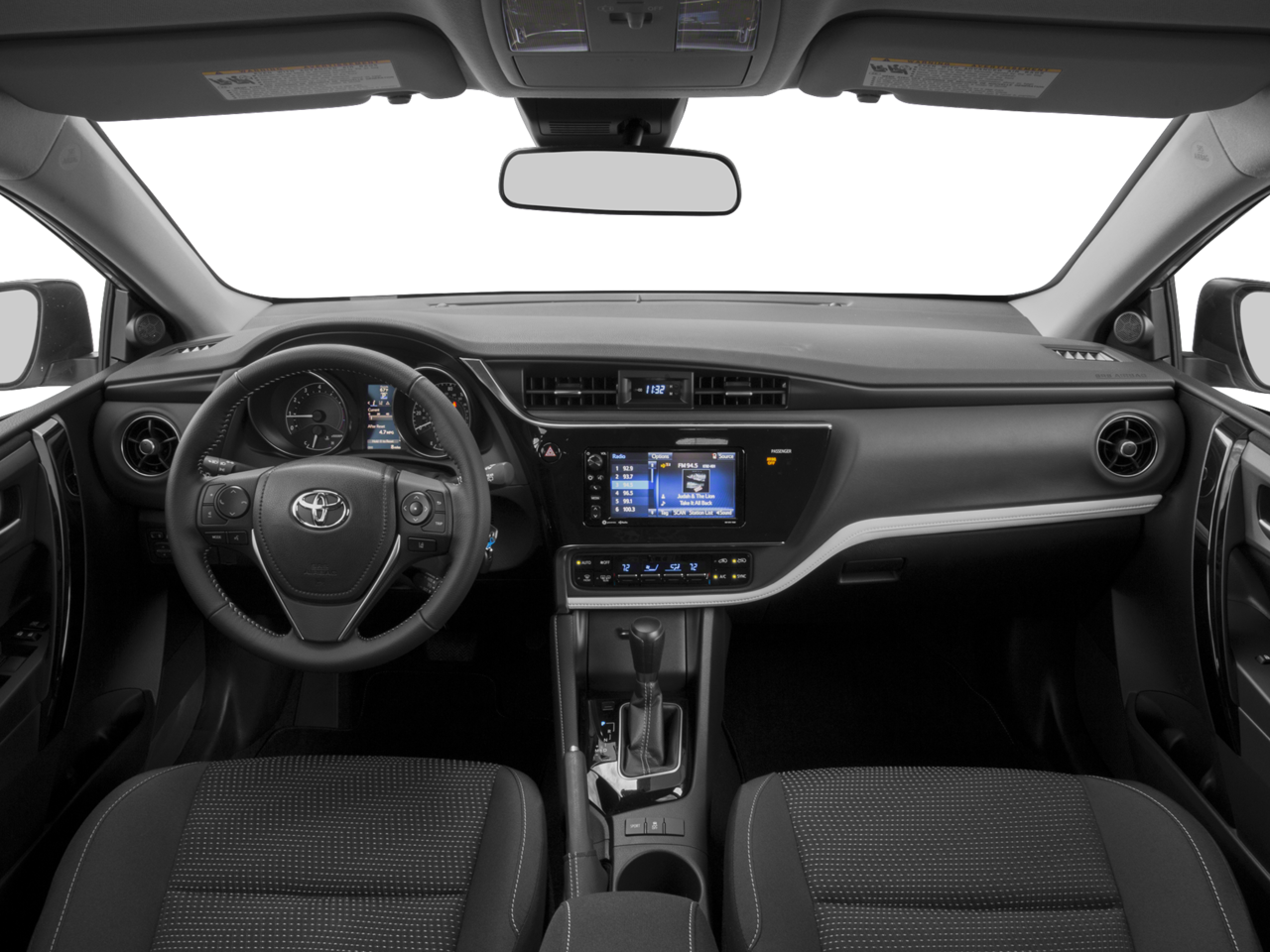 This vehicle Contains the following features and options: 17 x 7 Alloy Wheels, 4-Wheel Disc Brakes, 6 Speakers, ABS brakes, Air Conditioning, Alloy wheels, AM/FM radio, Anti-whiplash front head restraints, Auto High-beam Headlights, Automatic temperature control, Brake assist, Bumpers: body-color, Delay-off headlights, Driver door bin, Driver vanity mirror, Dual front impact airbags, Dual front side impact airbags, Electronic Stability Control, Exterior Parking Camera Rear, Fabric Upholstery, Four wheel independent suspension, Front anti-roll bar, Front Bucket Seats, Front Center Armrest w/Storage, Front dual zone A/C, Front reading lights, Fully automatic headlights, Heated door mirrors, Illuminated entry, Knee airbag, Leather Shift Knob, Leather steering wheel, Low tire pressure warning, Occupant sensing airbag, Outside temperature display, Overhead airbag, Overhead console, Panic alarm, Passenger door bin, Passenger vanity mirror, Power door mirrors, Power steering, Power windows, Radio data system, Radio: 7 Toyota iM Display Audio, Rear anti-roll bar, Rear seat center armrest, Rear window defroster, Rear window wiper, Remote keyless entry, Speed control, Speed-sensing steering, Split folding rear seat, Spoiler, Sport Front Bucket Seats, Steering wheel mounted audio controls, Tachometer, Telescoping steering wheel, Tilt steering wheel, Traction control, Trip computer, Turn signal indicator mirrors, and Variably intermittent wipers.