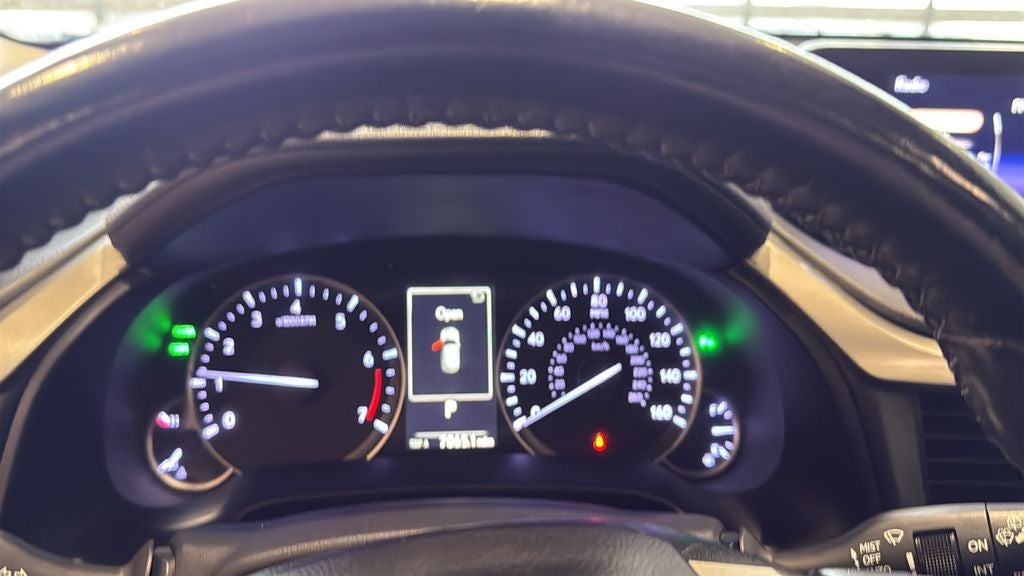 This vehicle Contains the following features and options: 3500 lbs Tow Prep Package (Engine Cooler, Heavy-Duty Radiator, and Transmission Cooler), Premium Package (Driver Seat Memory w/3 Settings, Leather Seat Trim, Power Folding Electrochromic Mirror w/Memory, Rear Armrest Storage Compartment, Steering Wheel Memory, and Wood Door Trim), 2.277 Axle Ratio, 4-Wheel Disc Brakes, 9 Speakers, ABS brakes, Air Conditioning, Alloy wheels, AM/FM radio: SiriusXM, AM/FM/CD Radio, Anti-whiplash front head restraints, Auto High-beam Headlights, Auto-dimming Rear-View mirror, Automatic temperature control, Bumpers: body-color, CD player, Compass, Delay-off headlights, Distance pacing cruise control: All-Speed Dynamic Radar Cruise Control, Driver door bin, Driver vanity mirror, Dual front impact airbags, Dual front side impact airbags, Electronic Stability Control, Emergency communication system: Lexus Enform w/Safety Connect, Exterior Parking Camera Rear, Four wheel independent suspension, Front anti-roll bar, Front Bucket Seats, Front Center Armrest, Front dual zone A/C, Front fog lights, Front reading lights, Fully automatic headlights, Garage door transmitter: HomeLink, Genuine wood console insert, Genuine wood door panel insert, Heated door mirrors, Illuminated entry, Knee airbag, Leather Shift Knob, Leather steering wheel, Low tire pressure warning, NuLuxe Seat Trim, Occupant sensing airbag, Outside temperature display, Overhead airbag, Overhead console, Panic alarm, Passenger door bin, Passenger vanity mirror, Power door mirrors, Power driver seat, Power Liftgate, Power passenger seat, Power steering, Power windows, Radio data system, Rain sensing wipers, Rear anti-roll bar, Rear reading lights, Rear seat center armrest, Rear side impact airbag, Rear window defroster, Rear window wiper, Remote keyless entry, Security system, Speed control, Speed-sensing steering, Split folding rear seat, Spoiler, Steering wheel mounted audio controls, Tachometer, Telescoping steering wheel, Tilt steering wheel, Traction control, Trip computer, Turn signal indicator mirrors, Variably intermittent wipers, and Wheels: 18 x 8 7-Spoke Aluminum.